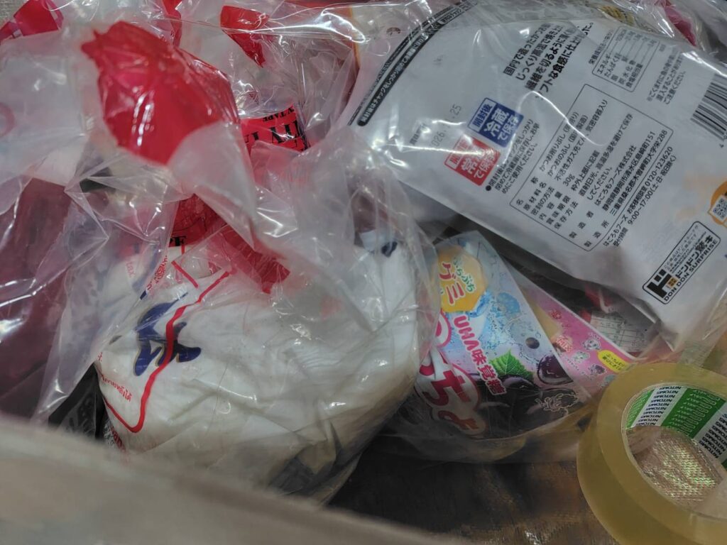 いつも二重にまいて、段ボールが破れてしまっても中身が出ないように、そして防水対策をしています。